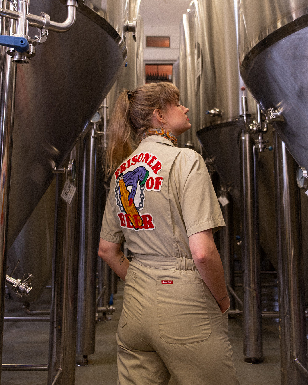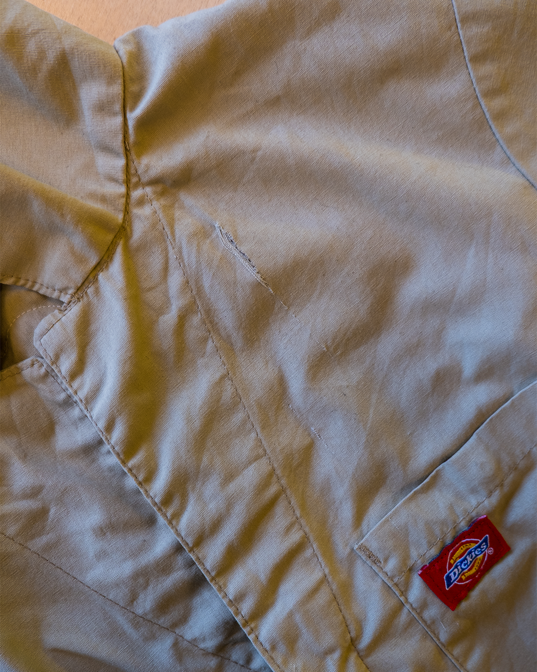 Denna pre-used Dickies jumpsuit har fått nytt liv med exklusiva handgjorda chainstitch-patches. Finns en skada på plagget, se bild! Vi skickar även med en patch som man kan sy på.