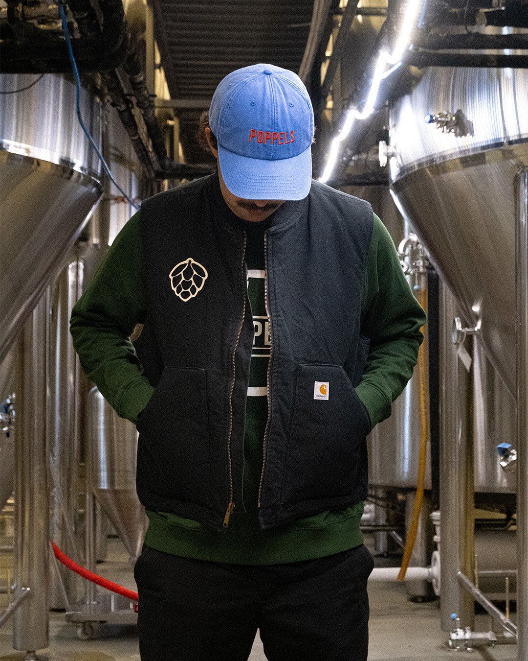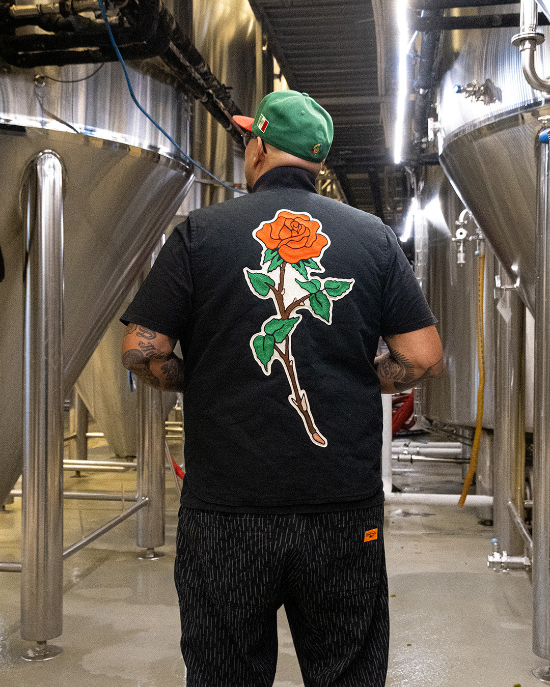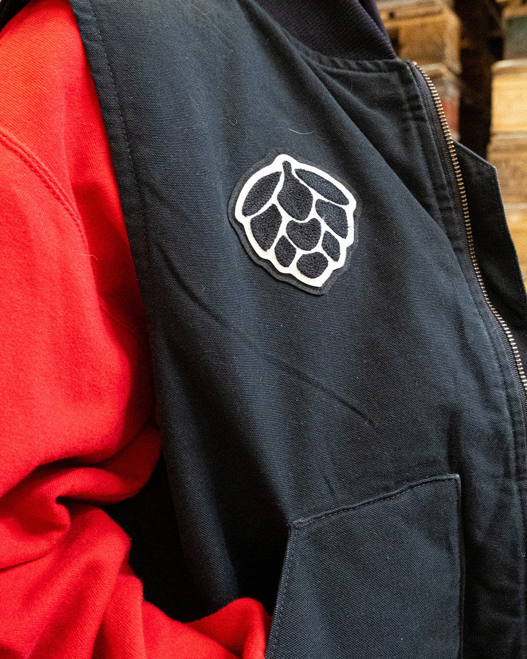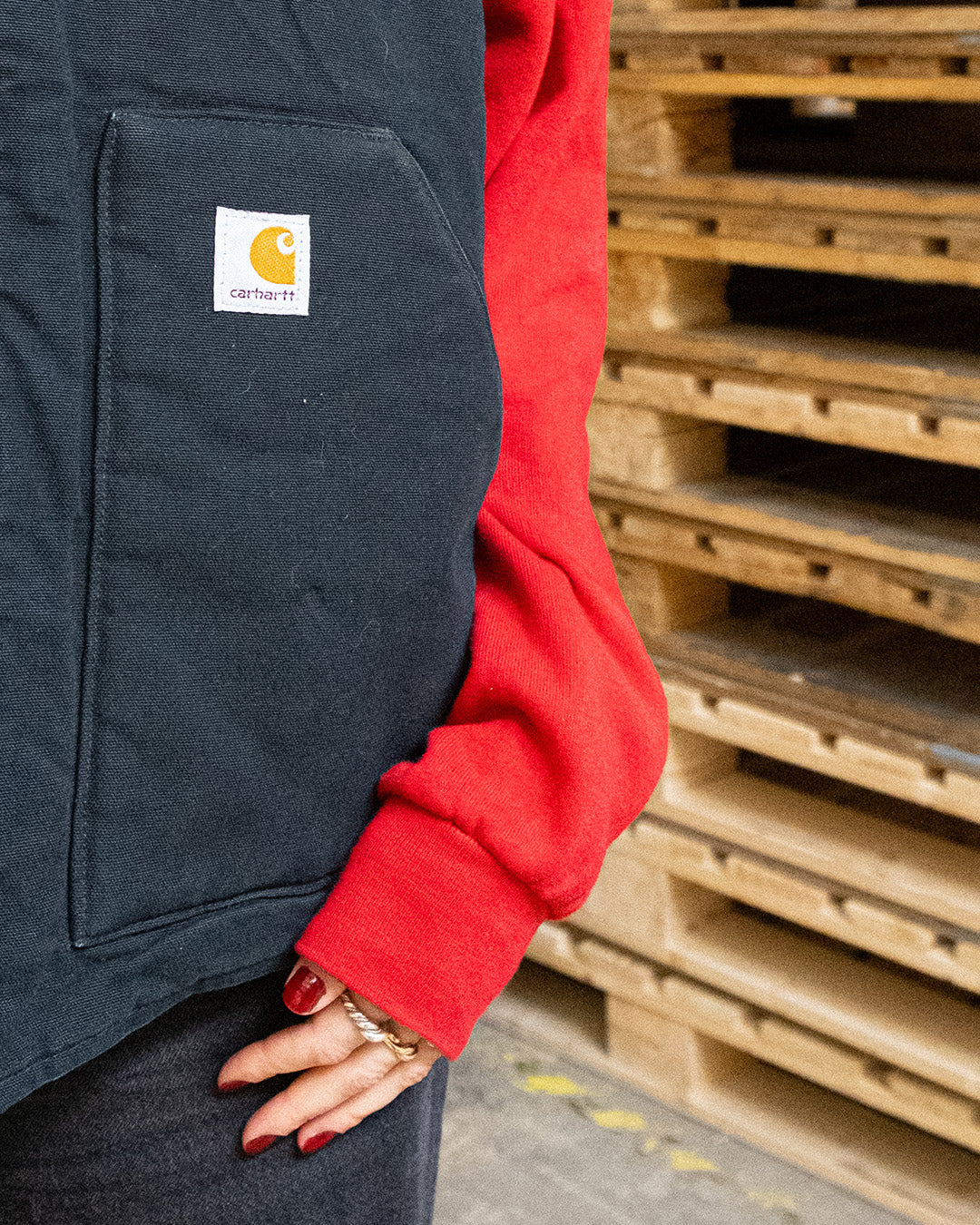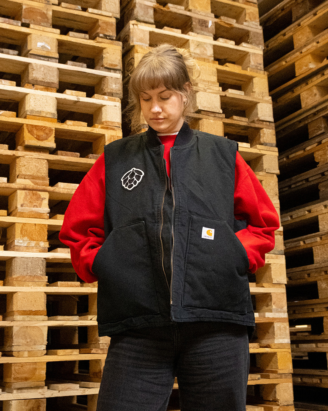 Denna pre-used Carhartt väst har fått nytt liv med exklusiva handgjorda chainstitch-patches.